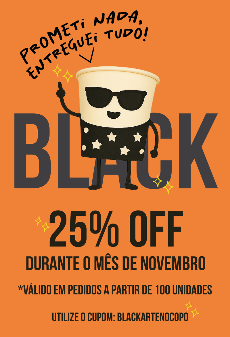 O pedido mínimo é de apenas 50 copos. Os valores são mais econômicos conforme o volume aumenta.